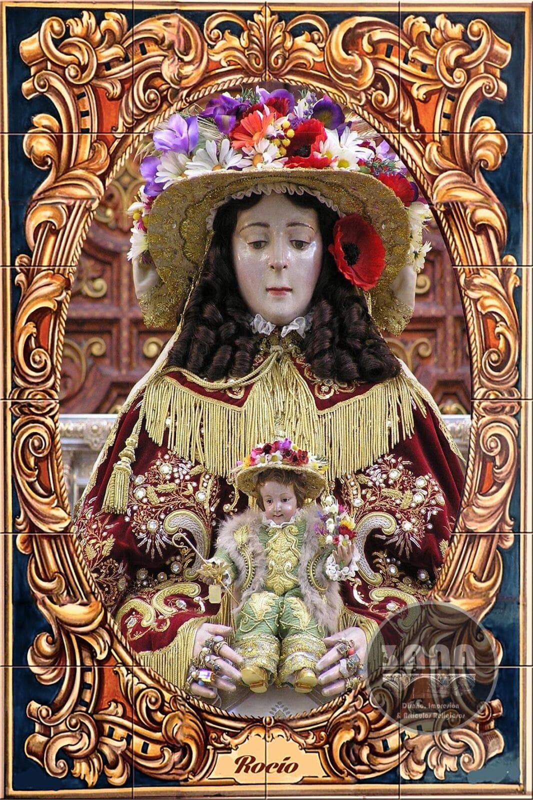 Características de Nuestros Azulejo Virgen del Rocío Paloma Personalizados.